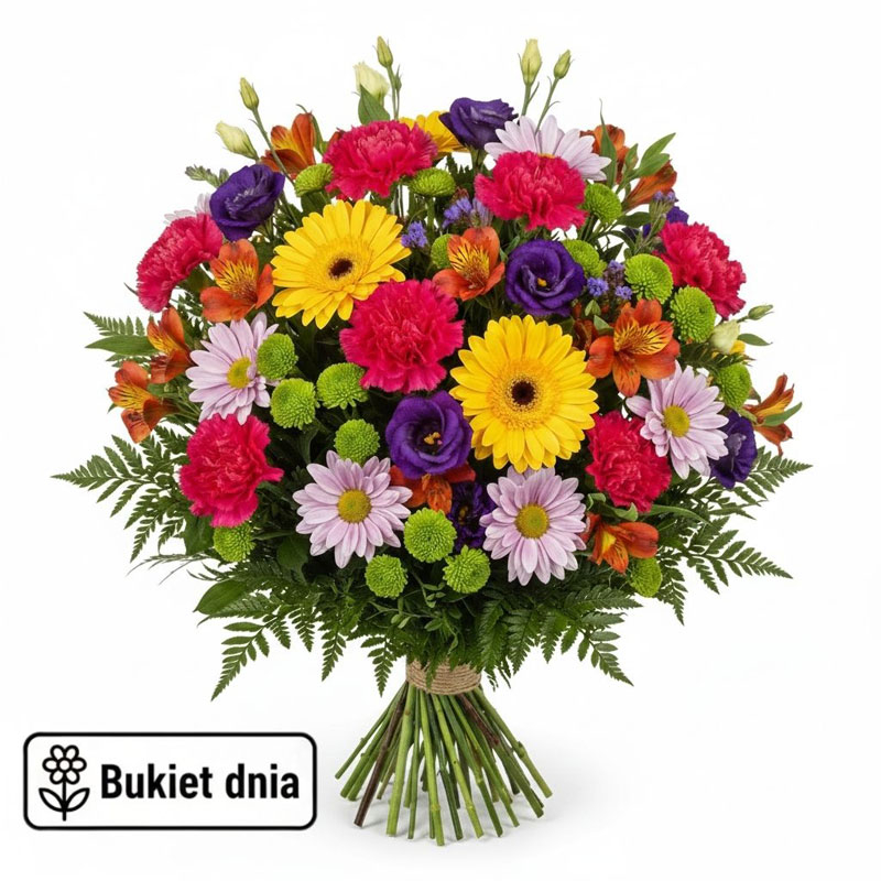 Bukiet Dnia to świeża i niepowtarzalna kompozycja przygotowywana każdego dnia przez naszą florystkę z najpiękniejszych kwiatów dostępnych w kwiaciarni. Każde zamówienie realizowane jest indywidualnie, a dobór kwiatów, kolorów i stylu pozostaje w rękach profesjonalistki, która dba o harmonijny wygląd bukietu. W kompozycji wykorzystywane są zarówno kwiaty sezonowe, jak i całoroczne, co pozwala stworzyć estetyczny i trwały bukiet niezależnie od pory roku. Bukiet Dnia doskonale sprawdzi się jako prezent na każdą okazję lub miła niespodzianka bez powodu. Zamów bukiet z dostawą na terenie Olsztyna, a my zadbamy o terminowe doręczenie i wysoką jakość wykonania.