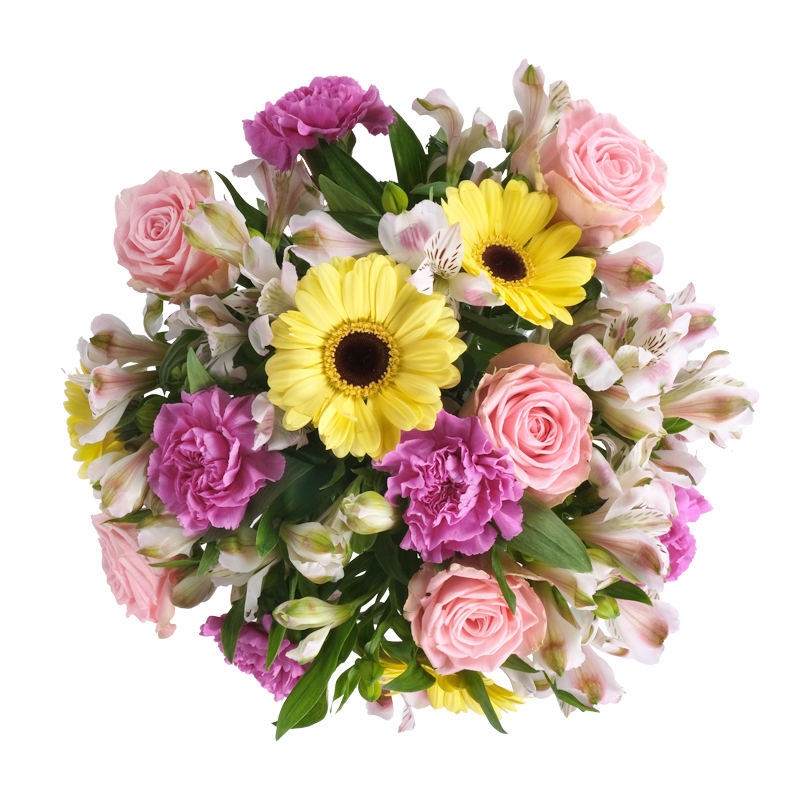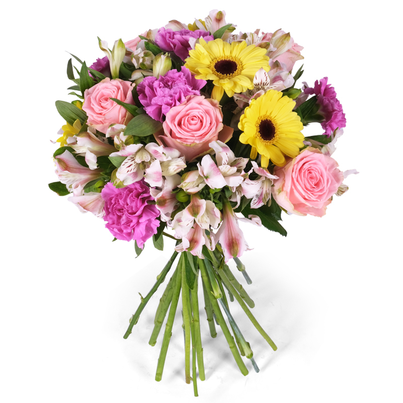 Bukiet subtelności to kompozycja, która zachwyca swoją różnorodnością form i faktur, a jednocześnie zachowuje pełną harmonię. Róże wprowadzają klasyczne piękno, gerbery przyciągają wzrok, a goździki tworzą gęstą, puszystą strukturę, a alstromerie, często niedoceniane kwiaty o charakterystycznych wzorach na płatkach, równoważą bardziej wyraziste elementy swoją subtelnością. Idealny prezent na wyjątkową okazję!