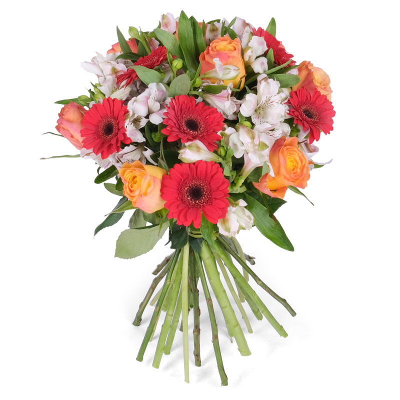Bukiet stworzony z myślą o wyjątkowych kobietach. Róże łączą się z wyrazistymi gerberami i eleganckimi alstromeriami tworząc harmonijną całość. Kompozycja emanuje kobiecością, siłą i delikatnością jednocześnie. Doskonały na każdą okazję wymagającą szczególnego gestu!